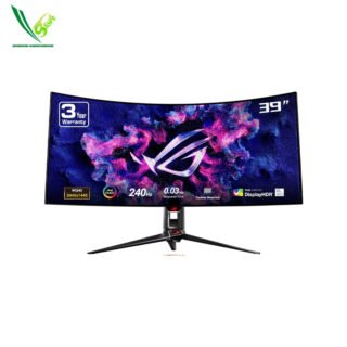 Add to cart39-inch curved ultrawide (3440 x 1440) OLED gaming monitor with 240 Hz refresh rate and 0.03 ms response time for immersive gaming Highly efficient custom heatsink, improved airflow design plus intelligent voltage optimization for better heat management to reduce the risk of burn-in VESA DisplayHDR™ 400 True Black compliance, 99% DCI-P3 gamut, and Delta E < 2 color difference for astonishing HDR performance Built-in ROG Smart KVM allows seamless control of two devices with a single keyboard and mouse, without extra hardware; also make it easy to copy files between devices via USB 3.2 Optional uniform brightness setting ensures consistent luminance levels ASUS DisplayWidget Center enables easy OLED and monitor-settings adjustments with a mouse Extensive connectivity options include DisplayPort™ 1.4 (DSC), HDMI® (v2.1), USB-C® with 90 W Power Delivery