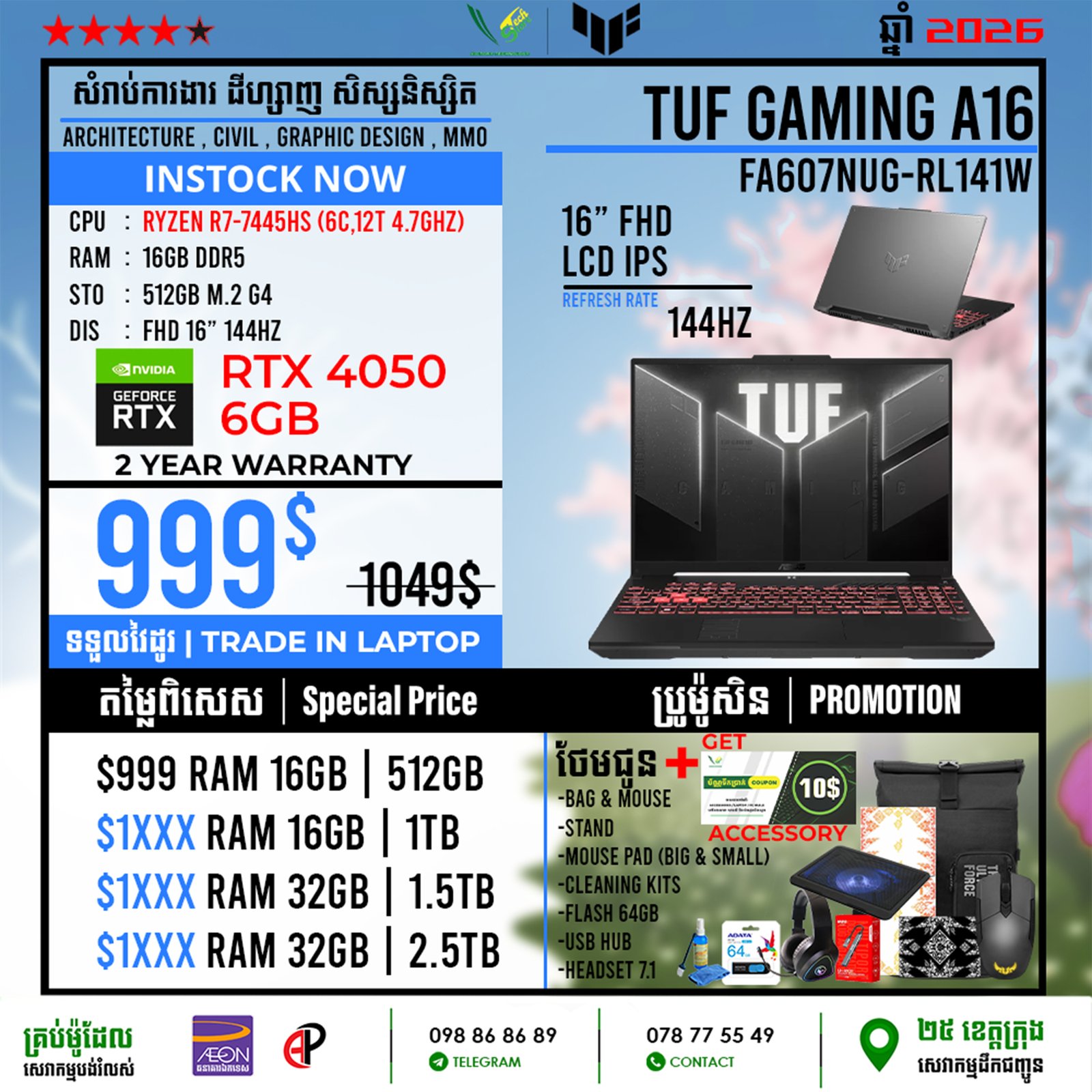 02 Gaming Laptop Asus TUF Gaming A16 | FA607NUG-RL141W (RTX 4050 6GB)