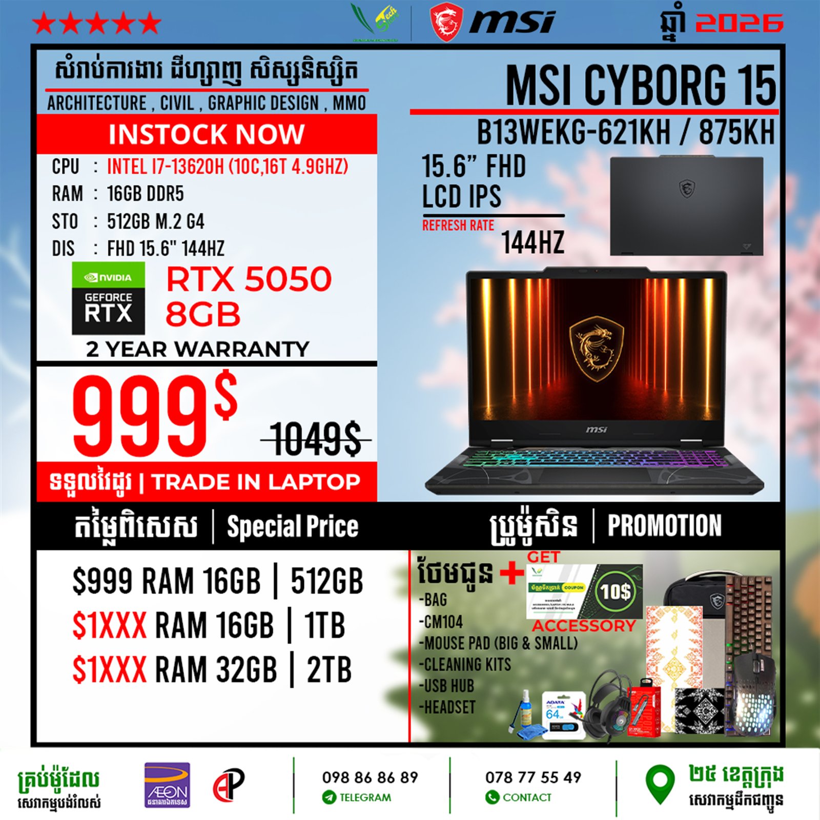 03 Gaming Laptop MSI Cyborg 15 | B13WEKG-621KH | B13WEKG-826KHNN (RTX 5050 8GB)