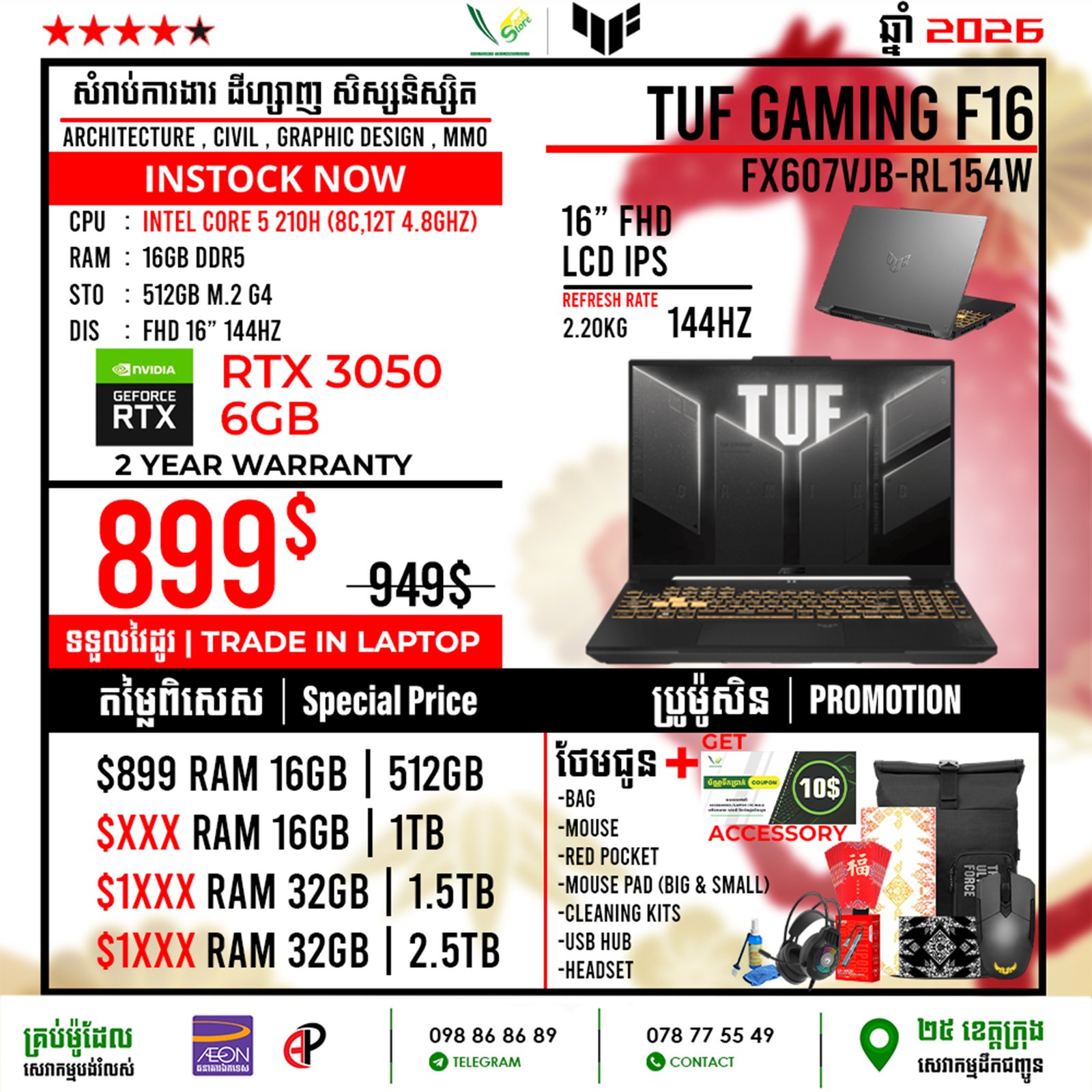 | 2 Years Hardware (Motherboard) 1 Year for screen, Keyboard 6 Month battery ផលិតផលថ្មី 100% ធានាពីក្រុមហ៊ុន ================================ ទិញភ្លាម បានភ្លាមបងៗ មានស្តុកស្រាប់ ================================ ធ្វើការបញ្ជាទិញតាមប្រព័ន្ធ Online | ដឹកជញ្ជូនគ្រប់ខេត្ត Call: 098 86 86 89 Facebook: V-Store Center Telegram: 078 775 549 |