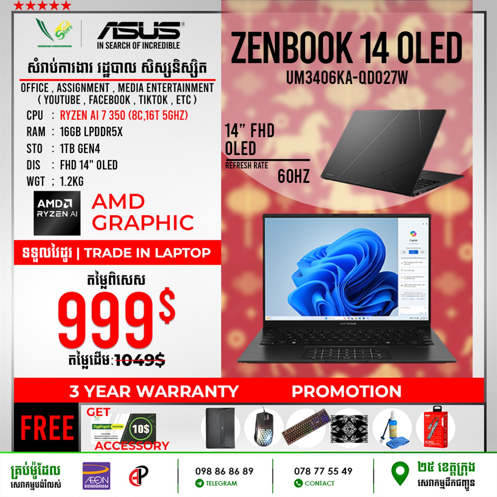 09 Office Laptop Asus Zenbook 14 OLED | UM3406KA-QD027W