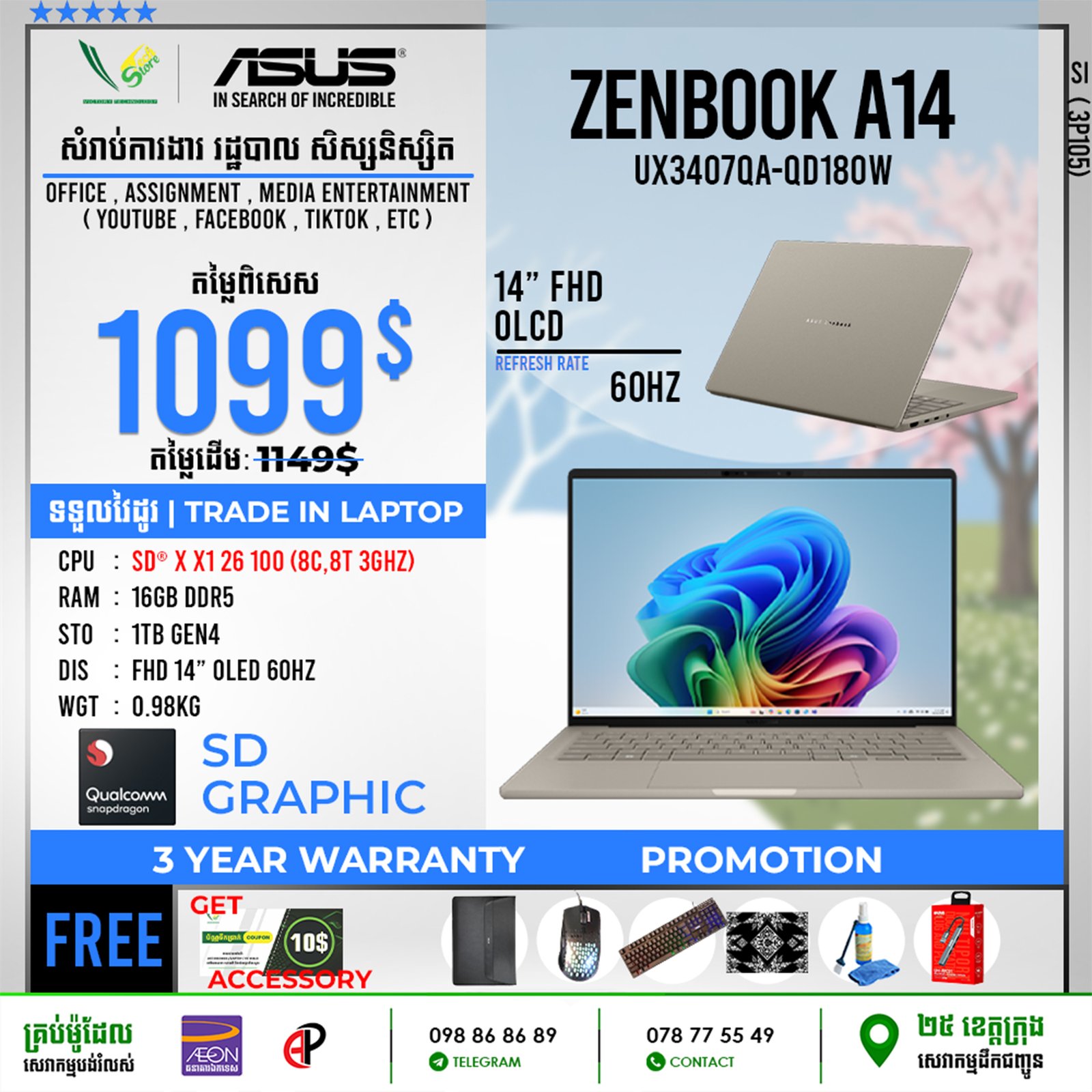 09 Office Laptop Asus Zenbook A14 | UX3407QA-QD180W