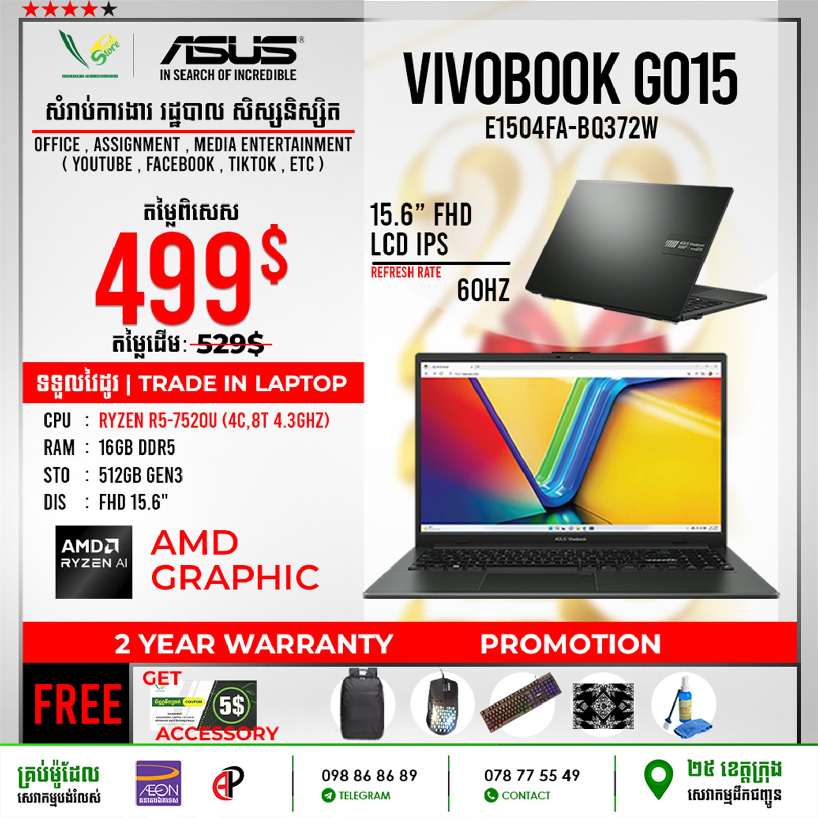 | 2 Years Hardware (Motherboard) 1 Year for screen, Keyboard 6 Month battery ផលិតផលថ្មី 100% ធានាពីក្រុមហ៊ុន ================================ ទិញភ្លាម បានភ្លាមបងៗ មានស្តុកស្រាប់ ================================ ធ្វើការបញ្ជាទិញតាមប្រព័ន្ធ Online | ដឹកជញ្ជូនគ្រប់ខេត្ត Call: 098 86 86 89 Facebook: V-Store Center Telegram: 078 775 549 |