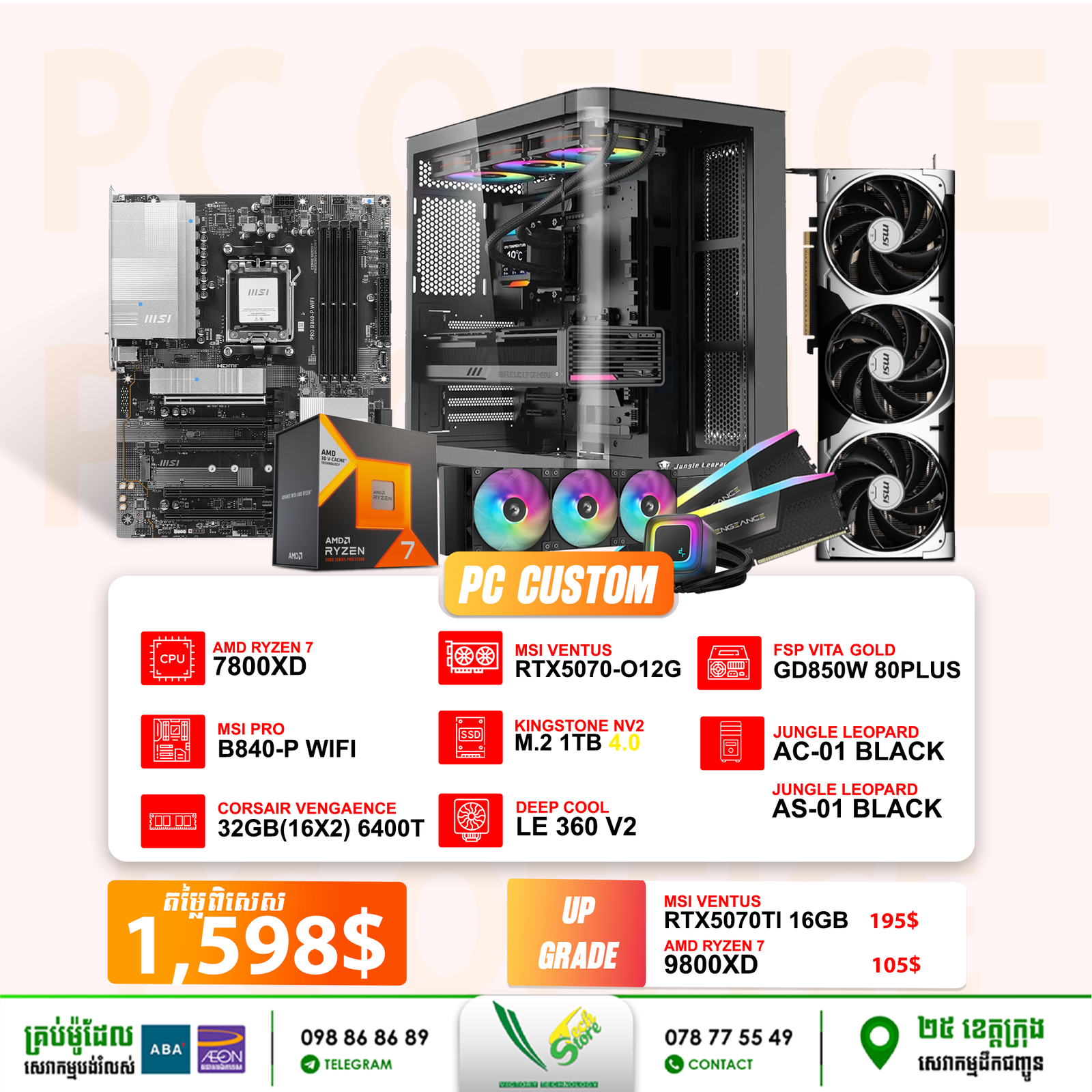 $45,00Original price was: $45,00.$38,00Current price is: $38,00.Compatibility: Intel LGA2066/2011/1700/1200/1151/1150/1155/1156/ AMD AM5/AM4 TDP: 150W Overall Dimension: 103.7×95×131mm (L×W×H) Heatsink Material: 4×Ф6mm Heatpipe(Direct Touch)+Aluminum Fin Weight: 750g Fan Dimension: 92×92×25mm Fan Speed: 600~2200±10%RPM Max. Air Flow: 45.8CFM RGB Type : 5V 3pin ARGB Noise(Max.) : 14~25.8dB(A) Rated Voltage: 12VDC Operating Voltage: 10.8~13.2VDC Started Voltage: 7VDC Rated Current: 0.15A Power Input: 1.8W Bearing Type: Hydraulic Bearing Connector: 4Pin PWM/5V 3Pin ARGBAdd to cartCompatibility: Intel LGA2066/2011/1700/1200/1151/1150/1155/1156/ AMD AM5/AM4 TDP: 150W Overall Dimension: 103.7×95×131mm (L×W×H) Heatsink Material: 4×Ф6mm Heatpipe(Direct Touch)+Aluminum Fin Weight: 750g Fan Dimension: 92×92×25mm Fan Speed: 600~2200±10%RPM Max. Air Flow: 45.8CFM RGB Type : 5V 3pin ARGB Noise(Max.) : 14~25.8dB(A) Rated Voltage: 12VDC Operating Voltage: 10.8~13.2VDC Started Voltage: 7VDC Rated Current: 0.15A Power Input: 1.8W Bearing Type: Hydraulic Bearing Connector: 4Pin PWM/5V 3Pin ARGB