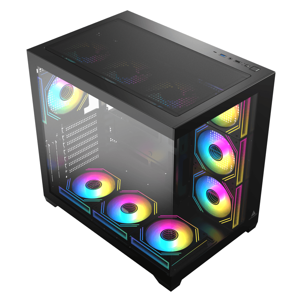 The H7 Flow RGB revolutionizes GPU cooling in a classic mid-tower form factor. Its vertical PSU layout allows space for 3 x 120mm bottom fans, offering efficient cooling without expanding the case footprint.
