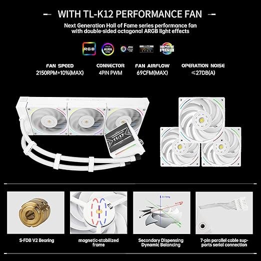 Thermalright Hyper Vision 360 ARGB AIO CPU Liquid Cooler – Magnetic Fixed 3.95″ LCD Display Screen, 2150RPM PWM Fans, for AMD AM4/AM5 & Intel LGA1150/1151/1200/2011/1700/1851 | WHITE.
